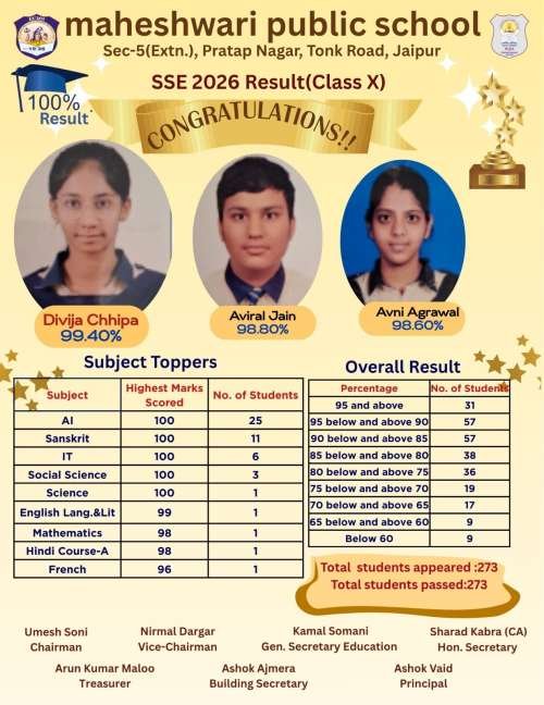 Education is the way by which we learn to move with new dreams and taking motto of success, keeping pace with the new world as well as giving dignity to our cultural heritage, we are going to begin our new academic session 2025-26. Maheshwari Public School provides an environment to enable the children to grow in a free and creative atmosphere through a variety of planned activities that help to provide a balanced growth physically, mentally, intellectually and morally. Our students make their presence in every walk of life. Our motto is to work with selfless devotion and dedication to the welfare of our students.